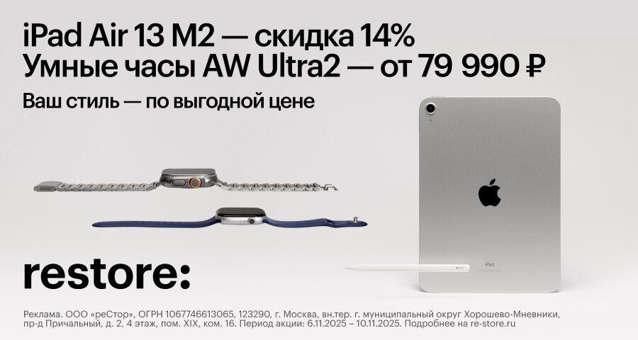 Выгода до 10 000₽ на iPad Air 13 и Apple Watch Ultra 2!