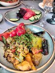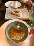 Yaxşı restoran, balkonda oturmuş, çox sayda işçi, yaxşı xidmət. Şorbanın bir hissəsini, salatın bir hissəsini, isti, qəhvə və kokteyl + 2 desertini yedik. Porsiyalar qeyri-adi dərəcədə böyükdür, bir desert otelə aparılmalı idi)) Balkonda yeganə narahatlıq kiçik masalardır. Çek 52 manat.