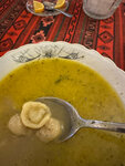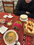 Aprelin 25-i gecə idi. Gözəl xidmət, yemək sadəcə dadlıdır, tonozlu tavanları olan gözəl salon, insan boyunun üstündəki divarları ilə bir neçə hissəyə bölünür. Bizim vəziyyətimizdə, belə bir divarın arxasında bir qrup kişi siqaret çəkdi, digər rəylərdə siqareti dayandırmağı xahiş edə biləcəyinizi yazdılar, əhəmiyyət vermədik, gərginləşmədik, Başlıq yaxşıdır. Dadlı çay, inanılmaz dovga şorbası. Mütləq tövsiyə edirəm