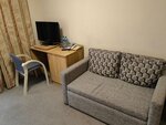 Нас заселили на 4 этаж, в номере постоянно присутствует гул от какой-то установки, причем открыто окно или закрыто - никак не влияет. Полотенцесушитель в сан узле холодный. Шторы имеют чисто декоративную функцию, от солнца они не защищают, в 5 утра вам будет светить солнце прямо в глаз. После заселения везде были черные длинные волосы. Попросили убраться повторно, но ничего не изменилось. На завтрак шведский стол с холодной едой. Есть микроволновка - погрей сам. Есть штука для тостов - она просто нагревает хлеб, но не поджаривает его. Утром можно встретить еду, которая была на ужин (он тоже имеется в качестве шведского стола - 1000 рублей с человека, тоже средней паршивости, лучше поужинать в ресторане неподалеку).