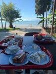 Очень красивое место. На самом берегу моря. Воздух,насыщенный эвкалиптами. Спали без задних ног. Шведский стол: завтрак, ужин, вкусно. Но мне удобнее обед без завтрака и ужина. Есть кафе на территории, где за отдельную плату можно пообедать. Но слишком маленькое, заказ ждать долго. Есть магазинчик на территории, там вода, мороженное, фрукты, чипсы и тп, чай, кофе, шоколад, кое-что для пляжа. Отдыхали в домике деревянном. Советский Союз. Мебель старая, дверцы шкафа-купе все время заедают. Кафель в душевной треснул в нескольких местах. Убирают регулярно. Каждый день ставят в номер бутылки с питьевой водой. Но воду для чайника покупали в магазине. Персонал вежливый, приветливый. Экскурсии, джиппинг, машины напрокат.