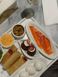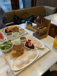 Для любителей морепродуктов — идеальное место где за очень комфортные цены можно попробовать огромное разнообразие рыбных позиций в самых разных вариациях. Большой популярностью пользуются завтраки с морскими сетами, пробовала суперсет с черной и красной икрой. Сет действительно внушительный, весом почти полтора килограмма. Что входит? Во-первых, черная осетровая и красная форелевая икра (каждой по 30 гр.)к икре — пшеничные блинчики и оладушки, а также драники из батата. Далее на подносе — форшмак из атлантической сельди, слайсы свежего тунца с соусом шисо, сыр, эклеры с крабом и муссом из пармезана и салат из розовых томатов с авокадо и шпинатом. Яйца можно заказать на выбор (глазунья, пашот, скрэмбл или омлет). В хлебной корзине – тартин, рогалики с кунжутом и маком, взбитое масло с анчоусами. На сладкое — йогурт с клубничным кули и клубникой, маковый кекс с пюре манго и деревенский творог с бананом и инжиром. За 3900 это очень и очень щедрое предложение! Были небольшие помехи в сервисе, но нюансы выяснили и проговорили с персоналом.