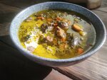 Душевная спокойная атмосфера, вкусная веганская кухня. Сегодня зелёный суп с тофу, кокосовым молоком и шампиньонами, очень зашло