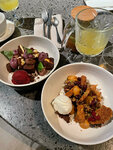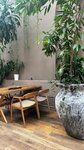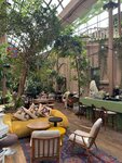 Очень красивый ресторан, утопающий в зелени 😍 Зашли в него после галереи искусств. Наш столик был рядом с баром и оттуда открывается чудесный вид. Официанты красивые молодые люди, вежливые и внимательные. Сервис 5+++ Салат с куриной печенью был вкусный, но мне не хватило в нём ингредиентов, например киноа или авокадо. Медовик свежий, нежный. Думаю что вернусь сюда ещё!