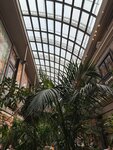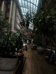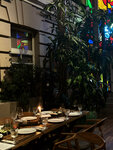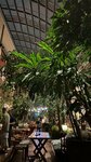 Очень уютный и красивый ресторан с большим залом с множеством растений, будто в зимнем саду и в тоже время в картинной галереи с полотнами различных размеров и сюжетов. Есть также более камерные залы с росписью, можно выбрать зал под свой вкус, везде ощущения разные, днём и вечером ощущается данное пространство большого зала тоже по-разному и по своему интересно. Мы сообществом архитекторов и жизайнеров пришли на ужин и сидели при живых свечах, что создавало уют. Нам было достаточно комфортно общаться. Из кухни, не скажу что прям в восторге, но возможно ещё не нашла здесь своё блюдо. Попробовала: Салат с куриной печенью и чипсами из батата, вот чипсы понравились. Очень вкусным оказался десерт: нугатиновое парфе с сезонными ягодами.