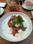 Посещали Багеби в 2023 году и нас поразило все - красота заведения, аутентичность, изумительно вкусные блюда (тогда брали салат с баклажаном в соусе из сливы и муссом с сулугуни и жареный имеретинский сыр с брусничным кремом - оба блюда нереально вкусные, обалденно интересные, просто отвал всего был), потрясающее вино, только хачапури тогда показался обычным и основное блюдо - какая-то курица тогда была. Спустя два года решили повторить отличный опыт и посетили место еще раз. С неприятным удивлением обнаружили, что от прежнего меню ничего не осталось. Среди салатов особо даже ничего не привлекло взор. Все салаты, которые мы взяли, были совершенно обычными, что грузинский, что с баклажаном. Баранина была мягкой и выше ожидаемого, и да, хачапури стал вкуснее. Конфеты натуральные, но не вызывающие особых эмоций. Отдам должное кофе - отличный, как и был. Но в общем и целом того восторга, что был в 2023 году, мы не испытали. Да, место изумительно красивое, зимний сад - это услада для глаз (хотя все еще капает с крыши), официанты вежливые. Однако если мы и придем еще - то только за кофе с хачапури 😄