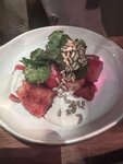 Невкусно, дорого, красиво. Теперь подробнее: шашлык свиной очень жилистый, есть невозможно, вопрос какую часть свинины используют .. Салат из хрустящих баклажанов совсем не хрустит, баклажаны безвкусные ,подается с каким-то пресным соусом , похожим на несолёный майонез. К запечёному батату пожалели сыра, сырной корочки не вышло, да и в целом блюдо на любителя , какого-то соуса к нему не хватает .Ещё брала пиво, к нему претензий нет. За все перечисленное оставила около 4000р. Из плюсов :очень красиво, высокие потолки, много больших растений, шустрые официанты. Главного - вкусной еды ,тут не нашла, не рекомендую.