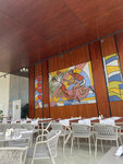 Очень атмосферное уютное место. Вид на фонтаны, много зеленых насаждений и смешной кот! Вкусное разнообразное меню, всем довольны. Отличное место на территории Сириуса!