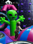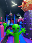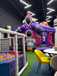 Очень атмосферное место в космическим дизайном . Все горки безопасные , сотрудник реально следит за детками , очень вежливая . Есть кафе со столиками . Можно праздновать детские праздники)))