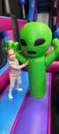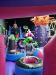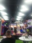 Отметили тут 2 д р. Брали без аниматора, детям по 8 лет, они сами прекрасно занимали себя. Просто играли целый день, бегали, прыгали. Удобно, что не надо обуваться, чтоб сесть за столик или сходить в туалет. Все чистое и новое. Помимо батутов и горок есть интерактив.