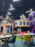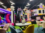 Очень удобно отдыхать с детьми в таком центре. Родители могут посидеть за столиками , попить кофе . При этом дети всегда находятся в их поле зрения . Все аттрационы безопасные для детских игр. Каждый найдет себе развлечение по душе. Красочный интрерьер , яркая подсветка , веселая музыка, мягкие пуфы и батуты создают атмосферу праздника . Мы не пожалели , что пришли с детьми именно сюда. Все остались довольны.