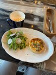 Сегодня была расстроена:((Крайний раз была тут в феврале,завтракала прекрасной брускеттой с мягким сыром и лососем.Сегодня повторила заказ…Девушка не сказав,что меню поменялось принесла мне огромный заготовленный багет с зеленью,каперсами и т.п. Я конечно не отказалась,взяла его с собой (не себе:)Спросила можно ли мне брускетту? С горем попалом мне обжарили багет до состояния сухарика🤦🏼‍♀️Есть было крайне не приятно… Рыба пересоленая.И ещё пожалуйста на кухне можно не так громко включать музыку?))))В зале французскую меланхолию перекрывает кухонная попса😁