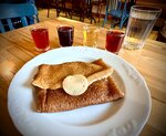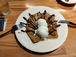 Очень понравилась атмосфера данного кафе, очень уютно. Очень приятный персонал и вкусная еда, брала блин с ветчиной и сыром, сыр был тягучим и не слишком горячим, а ветчина была не резиновой.