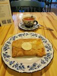 Уютное место. Удобное расположение, рядом с остановкой 3 трамвая. После прогулки по каналам под мокрым снегом самое то зайти сюда погреться, подкрепиться, подзарядиться. Персонал приветливый, разговорчивый и дружелюбный. Интерьер спокойный, музыка не навязчивая. Блинчики нежные, таят во рту буквально. Чай подали сразу, чтоб начала отогреваться, наверное. Меню включает в себя много позиций, что приятно. Можно и позавтракать, и пообедать зайти. Есть розетки, павербанки в аренду. Я была здесь в 11 утра в пятницу, народу было не много, что для меня огромный плюс. Цены не кусачие, как в центре. В общем и целом, место рекомендую к посещению 100%.