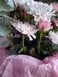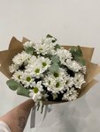 Сегодня зашли в этот цветочный. Выбора не было вообще, кроме бабушкиных роз в целлофане. Пришлось собирать букет . Купили за 3500 этот небольшой букет, обернули, но оборачивание было небрежным, в итоге дома решили убрать упаковочную бумагу. Итог: половина хризантем оказались полуживые, листья уже падают ( если что, обычно хризантемы должны стоять 1-2 недели, то есть этим уже 2 недели, по сути, раз они уже умирают и опадают) Больше сюда не пойдем
