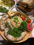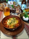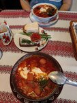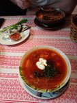 Колоритное место, уютное, чисто. Немного темно, но это элемент интерьера - всё стилизовано под национальный быт. Порции большие, всё очень вкусное, свежее. Персонал довольно сдержан, но настроен приветливо более-менее… Ниже писали про горячий борщ - тоже заметила такой момент. Но это не делает его менее вкусным. Вкусно именно по домашнему. Всенепременно стоит посетить. Видео снимала мужу)))) Дополнение. Посетили это место в мае 2025 года. Решили отведать борщеца и вареников… Мужу принесли стопочку Хреновухи… часа через два мы не знали куда нам деться… и мне и ему было таааак плохо… по всем фронтам… всю ночь… И почему-то сдаёте позиции в борщах… раньше были бомбовские… а в этот раз ну такое себе… столовая. За первые впечатления летом, и вкусный борщ оставлю какое-то количество звёзд. А за испорченный вечер и следующий день «сняла» бы все… давно я так не «попадала»