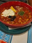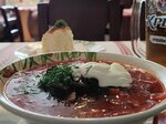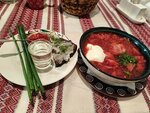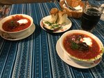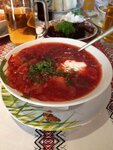 Мы гости Севастополя, Борщок выбрали из личных соображений - украинская кухня - это воспоминания детства и нежная грусть по тому мирному времени, когда ещё не стравили братьев друг против друга. Кафешку небольшая, в стиле хаты, аутентично, правда вариант бюджетный. Меню огромное названия блюд на украинском , вдруг кого смутит, а на русском уже расписано что собой представляет блюдо. Играет украинская музыка. Названия забавные) сын выбрал цезарь (здесь это не классический), муж выбрал борщ от сполохи (со стопочкой), я люблю с фасолью и пампушки, морс. Все ооооочень вкусное! Порции такие хорошие) мы наелись от пуза! Людей не мало, кто-то приходил вчера, решил прийти и сегодня. Мы довольны, рекомендуем! Это такой уголок здравого смысла, где есть просто люди, без хохлов и кацапов. И пусть все наши люди будут живы и здоровы!!!