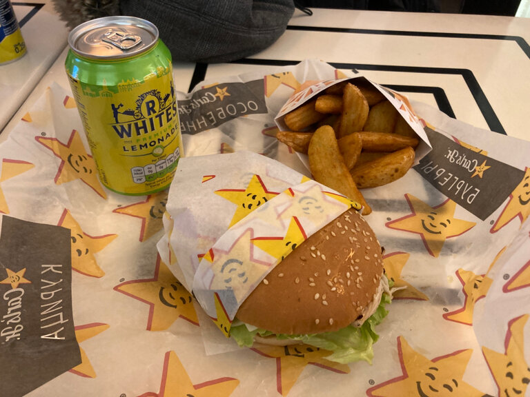 Слишком чувствительные модераторы Яндекса не пропустили предыдущую версию отзыва и эту наверняка отклонят, потому что, видимо, на полставки подрабатывают в офисе Carl’s Jr теми самыми бездарными менеджерами, о которых я писал. Подозреваю, что с управлением у сети проблемы, потому что заведения постоянно открываются и закрываются в разных рандомных местах. Надоело уже бегать за ними и доверие падает, когда понимаешь, что сегодня ты сюда приходишь в классное заведение, а завтра его уже тут нет. Как фирма-однодневка, ей-богу. А вот ассортимент и вкус очень хороши. Вегетарианские бургеры очень мало где есть — уважаю. Картофельные стрипсы лучше всякой картошки фри. Я был бы рад, если бы вместо вкусных точек везде были Карлс. Но так как у них (личное субъективное мнение, кажется мне так) в руководстве сидят совы эффективные менеджеры, дай бог чтобы хотя бы эта точка сохранилась.