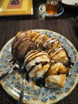 Старая добрая чайхана ) брали суп сметановый на 4 балла. Тавук изгара на 5 за свою цену и десерт банановый на 4.5 огромная порция но миндальная стружка чуть испортила общее впечатление ))) чай с малиной и мятой хорошо 👌