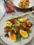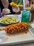 Как всегда все очень вкусно! Новое меню 100 из 10. Попробовали два напитка Хоби и ARMY, оба насыщены летним вайбом. Салат с огурцом, авокадо и креветками свежий и лёгкий. Спасибо, что вернули корндоги с фри панировкой! На десерт был нежный муссовый Тата с клюквой ❤️
