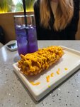 Я просто без лишних слов оцениваю данное место на 5*. Почему? Да потому что всё (кроме очередей) хорошо. Приятные официанты, которые да, иногда тоже могут забегаться и о чем то забыть, как человек их же возраста я отношусь к этому нормально, всякое бывает. Еда вкусная - отдельная любовь к чизкорндогу и напитку "Хозяин реки" Есть у меня такое хобби - читать негативные отзывы. Что ж, парочка комментариев меня поразили. Жаль что у других комментаторов нет возможности писать отзывы на отзывы 🤣, но да ладно. Для таких людей оставлю своё скромное послание: товарищи, вы идёте в ресторан который направлен на подростковое и молодёжное общество - логично что тут будет большой спрос и очереди, более того это специфичное заведение за счёт своей кухни. Да, представляете, если вам не понравился вкус токпокки не значит, что они "химозные" и "пластиковые" - просто вам не понравилось. Я тоже многую еду здесь не ем, в силу своих приколов с любовью и нелюбовью к разного рода блюдам. В общем, люди странные, злые, и объективно не объективные))) Ресторану большое спасибо за вашу работу ✨️