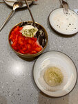 Заказывали чиз рамен и рамен с говядиной. чиз рамен даже есть не стала)) воняет ужасно, аппетита уже не было. попробовала и хотелось выплюнуть поскорее. говядина совершенно не съедобная. как тряпка и не жуется вообще. напиток «она ждала меня» заказала только из-за шприца с голубым наполнением. по итогу в шприце была просто прозрачная вода(не знаю что это) 👍🏼 обслуживание понравилось, официанты вежливы и доброжелательны.особенно хочу выделить мужчину, который обслуживал мой стол. спросил все ли понравилось и в ответ на недовольство предложил любую позицию из меню.атмосфера хорошая, в подарок дали наклейки с корейскими звездами. посадили прям напротив кухни. посудомойщица брала свой телефон в руки и потом этими же руками вытирала тряпкой столовые приборы. аппетит напрочь отбило)) не прийлу туда больше