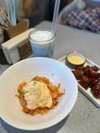 Хороший ресторанчик. Конкретно эта точка новая, поэтому процентов 50 меню у них еще нет, только часть блюд. Официанты очень хорошие, внимательные, заказ принесли буквально через 5-6 минут, хотя пришла в часпик, людей немного. Еда довольно острая и насыщенная, для тех, кто не знаком с корейским стритфудом может показаться слишком. Отдельный плюс за моти, вкусный, вмеру сладкий, не замороженный!! (во многих других местах подают замороженные) Место хорошее, будет замечательно, если добавят все позиции основного меню