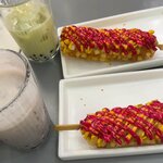 Были в этом кафе 5 января. Выбрали именно этот филиал, прочитав, что он новый, открылся пару дней назад, 3 января. Из плюсов можно отметить интересный, красочный интерьер, доброжелательный и вежливый персонал, ребята действительно старались. Мы пришли примерно в 14.45, была полная посадка, перед нами в очереди было две пары. Минут 10-15 мы ждали, когда освободится столик. С местами нам повезло, достались очень удобные. Но отметили, что много двухместных столиков на проходе. Сам зал кафе небольшой, народ сидит довольно плотно. Мы с подругой заказали по горячему Tiger Sugar и по Корн-дог Чиз (я выбрала в обсыпке картофелем фри с горчичным соусом, подруга - в сухарях с сырным соусом и кетчупом). Подруга дополнительно заказала Чиз рамен (ей не очень понравился, не доела). Потом выяснилось, что горчичного соуса нет, я согласилась на кетчуп. В результате нам принесли два совершенно одинаковых Корн-дога Чиз в хрустящих сухарях с сырным соусом и кетчупом. На моё недоумение, что я заказывала в обсыпке картошкой фри, официант ответил, что это она и есть. Раздувать скандал я не стала. Потом в чеке нашли подтверждение тому, что Корн-доги Чиз были одинаковые. В принципе, вкусно, хотя сейчас во многих точках фастфуда есть сырные палочки и гораздо дешевле. Ну, зато попробовали "корейский" фастфуд. В чём фишка Tiger Sugar тоже не поняли. По вкусу, как сладкая вода с привкусом кофе и молока. И в нём ещё коричневые шарики из крахмала, как комочки в киселе. Зато подруге, являющейся поклонницей BTS, понравилась музыка. Общее впечатление: не плохо. Фастфуд можно найти дешевле и вкуснее, здесь видимо доплата за антураж. P.s. в женском туалете хорошо бы крючки для сумок сделать, а то вешать их приходится на дверные ручки, которые не производят впечатления очень прочных