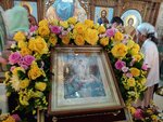 Очень красиво украшают цветами! Батюшка добрый, улыбчивый , видно работает с душой! Хор отлично поет, разборчиво. В храме работает кондиционер, нежарко.Начало чтение часов в воскресенье в 8 утра, затем литургия. Кто не успел исповедоваться в субботу, в воскресенье можно.Потом молебен. На улице угощают блинчиками с чаем бесплатно. Места в храме хватает всем. Буду теперь ходить постоянно сюда. Как будто в семье оказалась.