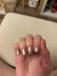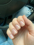 Мастер Нура аккуратно обработала пластину, кутикулу, хорошо и быстро запилила, внимательная и аккуратная. Но вот покрытие нанесено так себе, на фото видно, это с выравниванием. Много пузыриков и ямок, которые изначально не были видны из-за нюдового оттенка. По соотношению скорость:качество — норм, быстро, не режут. Но максимум за базовым маникюром когда нет времени, на что-то более сложное и многослойное здесь не решусь
