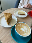 Кофе был вкусный, десерт тоже понравился. Обслужили быстро. Меню не очень большое, но что-то вкусненькое можно найти. Иногда попадали сюда в те моменты, когда десертов почти не было, в этот раз повезло. Сама кофейня небольшая, есть пару столиков с креслами, диванчик и стойка у окна, но места посидеть днем всегда есть. При хорошей погоде можно взять на вынос.