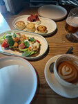 Оформление интерьера на 10 из 10, очень свежо, не грузит, природные материалы, очень актуальный дизайн, глаз отдыхает. Есть неплохая детская зона. Кухня авторская, каждое блюдо сделано с вниманием. Б/а коктейли отличные. Кофе тоже на высоком уровне. Дирекция внимательно относится к замечаниям гостей и идёт навстречу, если что-то не полностью устраивает. И это сразу огромный жирный плюс И лично от меня огромная просьба добавить безглютеновых опций теста, хлеба🙏 это уже необходимость по здоровью, не прихоть. И всё чаще встречается у людей эта проблема, увы