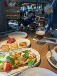 Вкуснейшее место. Атмосфера и обслуживание. Камин в центре зала 🥹❤️ Брала: Сырники 50 на 50 из рикотты и творога, подаются со сметаной и инжиром Брускетта с креветкой и страчетеллой и оч вкусным соусом Ммм…кофе оч хороший Для любителей пива — рай ) я не пробовала, муж оценил безалкогольное пиво Dacha
