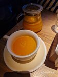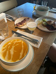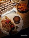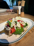 Противоречивое впечатление. Что хорошо: локация рядом с кинотеатром Октябрь, вкусная горячая закуска из баклажан, оперативное и вежливое обслуживание, большое пространство, хотя к зонированию остались вопросы (у окон дует, а в уютных местах то банкет, то детская игровая прямо между столиками). Что не задалось: не все позиции из меню в наличии. Понятно, что место шашлычно-мясное, но если заявлен сибас, пусть будет. Странная подача чая: гречишный принесли уже процеженным, в крохотной скляночке. А если я хочу, чтобы подольше настоялся? а если кипятку добавить? никак. И с десертом что-то неладно. Я знаю, каким должен быть баскский чизкейк, пробовала в разных авторских версиях и разных странах. Но тут он явно заждался меня - корочка усохла почти до состояния сухаря, мякоть подустала как слежавшаяся подушка. В общем, ни желания фоткать, ни вернуться, не возникло.