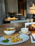 Пришли в заведение второй раз: просторное светлое помещение, столы удобно расположены, комфортно сидеть. Персонал сдержанный, переодически приходилось ловить взглядом, чтобы подошли, подзаказать, или попросить убрать пустые тарелки (заполненность была половина зала). По еде: нормально, вот ни больше, ни меньше. Ничего плохого, но и не запомнился вкус блюд. Читала, что в Фиш энд чипс маловато картошки - это не так, блюдо объемное, на фото этого не видно, но можно наесться одним им. Пицца неплохая, трюфеля не пожалели. Есть скидка в обеденное время буднего дня. Возвращаться желания не возникло, но и ничего плохого сказать не могу.