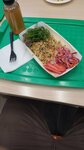 Забегали на бизнес ланч. Взяли два разных обеда. С пловом и с чебуреками. 1. Лапша- куриный бульон в котором плавали 5 штук лапши и 1 кусочек морковки и 3 тефтели. Лапшой это назвать нельзя. 2. Плов. Размазан тонким слоем по лавашу. Даже на первый взгляд уже смотрится ущербно. Рис приготовлен не равномерно, половина была жестковатой. Мясо в плове вареное и сверху просто обжаренное, по вкусу просто вареное мясо без специй. Реально пожалели что обедали здесь.