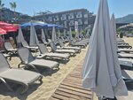 Хороший вход в море. Кафешка заняла пляж и всеми силами пытается уменьшить муниципальную часть, что бы заставить людей брать платные лежаки. Сегодня по 300 лир. От моря до лежаки оставили полоску 3 м. Большая часть лежаков пустует, а работники кафе ругаются (хамят, что не чего лежать на песке), что люди располагаются близко к лежакам.