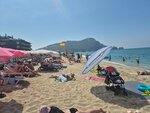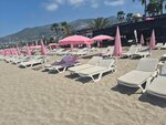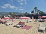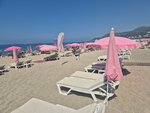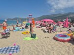 Песчаный пляж. Достаточно чисто, много ресторанов. Красивые виды на горы. Пляж окружен с двух сторон горами. Есть разные водные развлечения. Всегда много свободных лежаков. Красивые закаты.