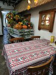 Стилизовано под украинскую деревню, всё бы неплохо, но количество искусственных растений переходит все границы. Борщ слабый, вкус и цвет не насыщенные, мяса кот наплакал, в горшочке плавал лавровый лист, ну как-то несерьезно. В солянку сразу запустили лимон, причем с кожурой и несколькими косточками. Драники больше напомнили котлеты, ну уж очень толстые, сухие. Ну 21 век, можно где-то почитать, посмотреть, как вкусно приготовить и правильно подать.
