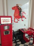 Стены, потолок, различные детали, вид из окон - интерьер шикарный, по-другому и не скажешь. Даже уборная - красотища! Цены, на удивление, порадовали. Отличное детское меню, хорошие порции. Брали картошку фри, пельмени, сосиски с пюре, молочные коктейли. Вкусно! Борщ, блины с шоколадом (шоколад - пальчики оближешь), хлебная корзина с маслом, маленькие пирожки, квас - все было очень вкусно!