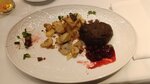 Рекомендуем однозначно этот прекрасный ресторан. Отмечали день рождение. Все блюда очень вкусные. Ассорти сала и ассорти грибов соленых прямо очень вкусные. Из горячего брали котлеты пожарские, скоблянку, и говядину по-строгановски. Все на высшем уровне. Салат Оливье Люсьен вкусный, а вот с говядиной и соусом из шпрот не понравился. Странное сочетание. Украшение вечера конечно был десерт "Золотая Неваляшка", просто огонь. Толстый слой белого шоколада, внутри чизкейк с клубникой и картинка на шоколаде с символами Москвы. Прекрасное обслуживание и шикарный вид на Кремль. Обязательно вернемся.
