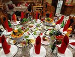 Отмечали Новый год с друзьями и детьми! Заказали столик, обстановка соответствующая названию ресторана. Мы в принципе были не против, уютно, комфортно. Новогодняя программа была просто 🔥🔥🔥🔥. Но вот стол, конечно с меню и количеством еды лучше бы пересмотреть и все таки накрывать от души, как обычно восточные люди встречают своих гостей. Стол вышел скромным, не скажу что все не вкусно, но все таки не то, что мы ожидали. Ставлю 5 и не снижаю только потому что было впечатляющее празднование, и стол не испортил наше настроение, ведь мы шли не поесть, а получить новогодние впечатления. Мы это получили. А поели мы уже вкусно дома (я подготовилась и холодильник был полон вкусняшек).
