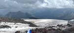 Невероятное место! Описать весь спектр эмоций, чувств и ощущений невозможно. Это нужно почувствовать. Подъем в кассе за три канатки 2700р, если покупать на сайте 2450р. На высоте 3847м станция Гарабаши можно за отдельную плату договориться подняться выше на ратраке или вездеходах. Цены у каждого водителя свои))) снегоходы от 3000р , цена зависит от высоты на которую хотите подняться. Перед поездкой следите за погодой, нам не повезло попали под дождь и облака укутали вершину.