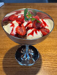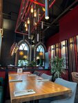 Кухня здесь потрясающая, блюда очень вкусные и с хорошо продуманными вкусами. Единственный серьёзный минус - приносят сразу все заказанные тобой блюда. Стоит сразу официантам сказать, чтобы сначала приносили супы, а потом мясо. Иначе будете вторые блюда есть уже холодными, как вышло у нас. Мы заказывали: - куриный суп с пастой орзо - лёгкий, мягкий супчик с нежной пастой, но ему не хватает хлеба, хорошо бы официантам уточнять этот момент - тыквенный крем-суп том ям с креветками - кремовый и ароматный, очень удачное сочетание сладковатой тыквы и яркой кисло-пряной пикантности классического том яма - утиная грудка с соусом демиглас и морковным пюре - два нежных, сочных кусочка мяса с соусом, который имеет лёгкую сладость и небольшую кисло-винную нотку, а морковное пюре прекрасно смягчает интенсивность соуса и мяса - шашлык из свиной шеи с перцем гриль и свежими овощами - мясо сочное и хорошо прожаренное, но мы не смогли в полной мере им насладиться, потому что пока ели супы, мясо уже остыло - и на десерт мильфей с заварным кремом и малиной - хрустящее тонкое тесто, но вот крем для меня оказался немного плотноватым, хотелось бы более лёгкую текстуру. Обслуживание приятное, чувствовалось, что официанты стараются. Сам ресторан очень уютный. Красивая веранда с зеленью и видом на храм. Внутри тоже уютно, особенно на втором этаже с большими окнами, внизу более камерно. Несмотря на нюанс с подачей блюд, рекомендуем это место для приятного обеда или ужина – кухня действительно стоит внимания.