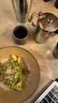Нежное, томленое пастрами, запеченный бэби-картофель, томат, маринованный с мёдом и соевым соусом, хрустящий румяный тартин, яйца-пятиминутки. Рядом свежий зелёный салат и острая капуста кимчи для акцента. Кимчи и растрами - любовь с первой вилки