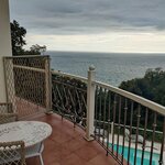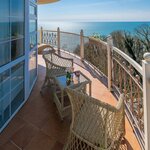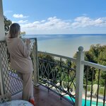 Отдыхали в этом гостевом доме в конце сентября – начале октября. У нас были апартаменты, по нашему – евродвушка. Отдельно спальня и отдельно кухня-гостиная. Из каждой комнаты есть выход на свой балкон. Балконы большие, с плетеной мебелью. А вид открывается – фантастический – на море, горы и город. Вечером, сидя в кресле на балконе, можно наблюдать заход солнца. А всё потому, что отель располагается на возвышенности, практически на самой верхней точке города Хосты. Это, с одной стороны, плюс, потому что виды очень красивые и расположен отель уединенно, с другой стороны – для того, чтобы спуститься в город или подняться к отелю необходимо преодолеть достаточно крутую и длинную лестницу. Впрочем, если вам это затруднительно сделать, то можно вызвать такси и за небольшую плату вас прекрасно довезут до нужного места. Рядом с отелем нет магазинов – ближайший – Пятерочка, находится где-то в 500 метрах, но идти туда не удобно, так как дорога проходит по оживленному шоссе, а тротуары на данном отрезке не предусмотрены. Нет рядом, также, и кафешек-ресторанов, все они расположены внизу, в центре Хосты. Как, впрочем и пляжи. Всё – внизу)) Это обязательно надо учитывать, если вы маломобильны или не готовы подниматься по лестнице. Сам номер достаточно просторный. Спальня большая, окна – в пол – панорамные, матрасы удобные, пастельное бельё и полотенца хорошего качества. В другой комнате, которая гостиная-кухня, имеется раскладной диван, обеденный стол, холодильник и кухонный мебельный набор с плитой и микроволновкой. Имеется вся необходимая посуда для самостоятельного приготовления еды. Есть в отеле отличный и теплый бассейн, который работает в любую погоду. В стоимость входит завтрак, который проходит на красивейшей террасе, опять же с видом на море. На завтрак есть меню, состоящее из 6 вариантов. Каждый может выбрать то, что ему нравится. К еде прилагается свежесваренный кофе. Вкусный. Выводы – гостевой дом отличный, с вкусными завтраками, теплым бассейном, хорошими номерами и радушными хозяевами, но расположен на верху, куда надо добираться по лестнице. Для нас это было плюсом – надо двигаться, а как для Вас – думайте сами))