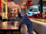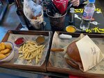 Так и не поняла восторженных отзывов… 1. В помещении летают мухи 2. Бургер с куриным фаршем отвратителен, т.к. используется фарш не из филе, а из субпродуктов. Как результат, Вы насладитесь твёрдыми вкраплениями мелких косточек. 3. Пафосная фирменная картофель фри, окажется просто посыпанная пармезаном, сухим жаренным чем-то и зеленым луком. Подача - норм Обслуживание - норм Цены - немного выше среднего