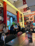 в целом все нормально. Вкусно, но не вау (пробовали и вкуснее) обычно. Да быстро, но те блюда, что уже заготовлены.. салат ждали долго, картошку фри и нагетсы - потеряли. Не поняла ажиотажа вокруг заведения, люди прям реально ждут при входе и на улице в дождь. На субботу вечер стол бронировали в понедельник и "урвали" последний столик. Полная посадка в весьма тесном и маленьком зале, музыка "долбит" так, что не слышишь официанта, но надо сказать потом к этому привыкаешь. Из ребер брали говяжьи и свиные vol 1 и 2. Мужу очень понравились, а на мой вкус слишком много глазури + они были еле теплые, а картошка к ним откровенно холодной. Дети ели бургеры - ничего особенного. Салат из баклажан - восторг. Коул слоу - совершенно не понравился: капуста с яблоком в йогурте... пиво, сидр - вкусные, сет ягодных настоек - юппи чистой воды. Официанты - огонь, туалеты чистые. В общем хорошо, но на мой вкус ничего сверхъестественного. Возвращаться желания нет.