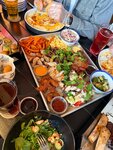 Заказали ребрышки от Басты Big size - одну на двоих порцию и салат с баклажанами - мы с мужем не смогли осилить все, просто выкатывались из заведения. Вкусно. Персонал 10/10 - я не любитель пива и сидра, но мне помогли выбрать по вкусу, как и мужу помогли определиться с пивом (выбор пива большой) Цены - московские, но это того стоит. Персонал/чистота/ хороший туалет Точно знаю, что вернемся попробовать другие позиции (может в другой ресторан - сюда пошли, потому что только тут нам удалось забронировать день в день) Совет: бронируйте заранее! Особенно на субботу. Салат с баклажанами и помидорами - отдельно по нему скажу, ведь я обожаю этот салат и везде его беру - тут он прям на уровне!