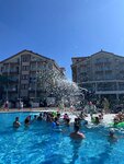 Август 2025г. Хороший, не большой отель. На ресепшене есть русскоговорящий сотрудник. Гиды fun sun практически всегда в отеле. Номера очень маленькие но аккуратные, хорошо убираются. Горячая и холодная вода без проблем. Питание вкусное и разнообразное, за время пребывания в отеле были тематические дни турецкой, японской и итальянской кухни. Мест хватает всем, очередей нет. Вечером накрывают столы у бассейна, часть раздачи и гриль переносят на улицу. Коктейли у бассейна,вкусный зерновой кофе в кофемашине которая находится в баре со сладостями. Пивной бар. Гузлеме, пончики, мороженое и т.д. Трансфер на пляж постоянный практически без ожидания. Бар на пляже далековат. Анимация только у бассейна, на пляже тишина и покой, мелкий песок, пологий заход в море, можно прогуляться по пляжу вдоль моря, не далеко место где можно посмотреть и покормить черепах и рыбок. Перед пляжем красивый парк с променадом для вечерних прогулок (хотя местами там темновато, но это уже не про отель). Вечерние шоу в основном слабенькие, караоке, танцы у бассейна, турецкая ночь, днём пенная вечеринка.